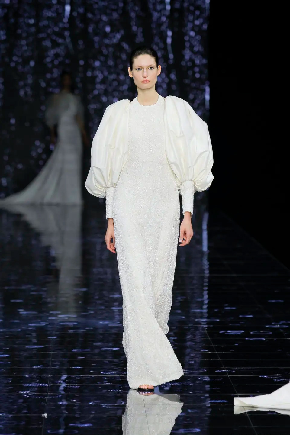 Na temporada 2023 as mangas não passaram despercebidas e, entre as tendências em vestidos de noiva 2024, elas seguem luzindo extravagância e ousadia. Mangas de estilo poeta bufantes e mangas em camadas feitas inteiramente em tule voltam às passarelas com tudo.